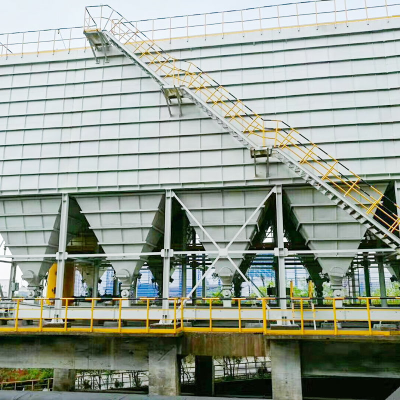 El colector de polvo consta de una tolva, una cámara superior, una cámara intermedia y una cámara inferior. Las cámaras superior, media e inferior tienen cámaras. Durante el funcionamiento, el aire cargado de polvo ingresa a la tolva a través del conducto de entrada de aire. El polvo grueso cae directamente al fondo de la tolva, mientras que el polvo fino es transportado hacia arriba por el flujo de aire hacia las cámaras media e inferior.